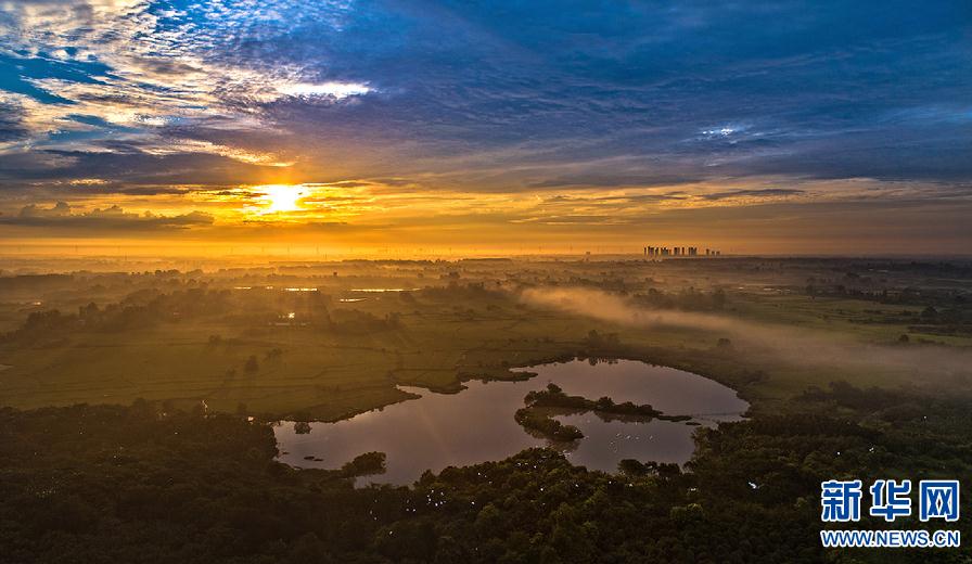 夕阳西下,蓝天、白云、绿树、碧水相互映衬,展示出一幅迷人的画卷。地处江淮流域的合肥市花岗镇,北靠紫蓬山风景区,南望巢湖干流丰乐河,境内气候宜人,土壤肥沃,盛产花生蔬果、苗木花卉、畜禽水产、蚕桑药材。近年来,该镇以现代农业示范区为依托,大力促进农业转型升级,发展现代农业,焕发出勃勃生机和活力。新华网发(李斌摄)